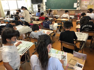 1クラスは社会、邪馬台国の学習です。黒板に近畿説と北九州説と書いてあります。個人的には、福岡出身ですが、絶対近畿説です。奈良県の桜井市の辺りは日本の原風景を感じます!卑弥呼がいたのにふさわしい土地柄だなぁと思います。