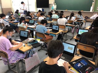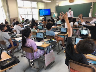 4年のこのクラスでは、タブレットで水の仕組みの調べ学習が進んでいます。先生が、この後どのようにまとめる予定かを尋ねるとたくさんの手が上がりました。先の見通しを持って学んでいて頼もしいです♪