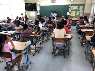 朝一番に教室へ上がると、4年生はどこも日直が前に出て、朝の挨拶をし、朝の会を進めていました。人の前に立って話すことはとても良い体験学習になります。伸び伸びとしっかり務めてください。