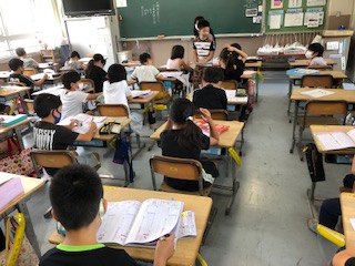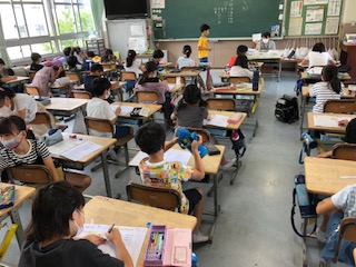 3年生の2クラスです。朝のモジュールで、算数「あまりのあるわり算」に取り組むクラスと漢字に取り組むクラスです。子どもたちが個々に取り組む間に、先生は提出物をまだ出してない人へ出してくださいと声かけをします。1つ1つ提出を確認していくのはなかなか大変な作業です。全員がサッと出してくれたら、サッと揃い、声かけもせずに次のことができて気持ちよく朝の準備が進みます♪