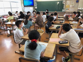 1クラスは国語で、考え合って自分の意見をしっかり持って発言へつなぐ「学び合い」で深めます♪