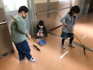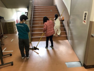 掃除の時間、階段や職員室前の廊下をきれいに掃除するのは3年生です♪