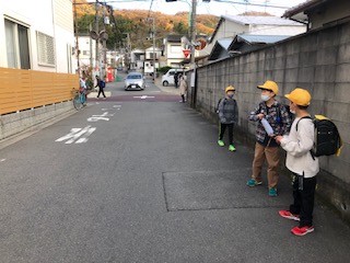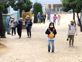 下校時の様子です。四ツ辻に見守り隊の女性の方が立ってくださっています。校庭から校門へと続く桜並木では、子どもたちと談笑する見守り隊の方がおられます。開けている大きな門から不審者が入ってこないよう見守ってくださっています。子どもたちに安心をくださっていることに深く感謝いたします!