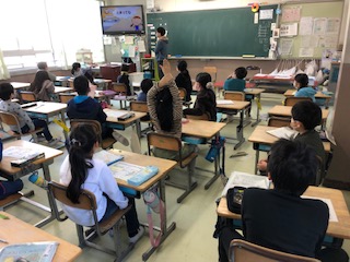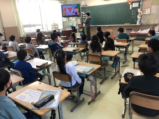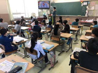 2年生のこのクラスは、交通安全についての授業です。動画では、毎朝校門に立って子どもたちに声かけしていることと同じ言葉が流れていて、心強かったです。「車が止まっても右左右を見て、車が来ないことを確認してから横断歩道を渡ります。」と流れました。何も考えずに、右左も見ずにぼんやりと歩き出す子や、歩道から車道にふらふら出て歩く子がいます。いろいろな場面で、自分で自分の安全を守る力をつけていきたいものです。