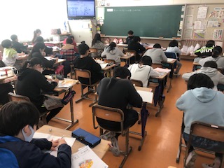 5年生の教室はとても静かで集中しています。1クラスは道徳、命の重さや国境を越えた助け合いについて考えます。1クラスは図書、先生は教室にはいません。図書室で貸し出しのお世話をしていますが、本を借りて静かに戻って来ると、静かに席につき静かに本を読んでいます。1クラスは算数、それぞれ自分で考えて問題に取り組んでいます。素晴らしい姿です♪