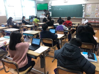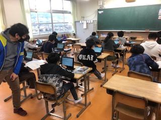 5年生の1クラスは、算数の少人数分割授業です。どちらもタブレットを使って、それぞれのペースで進めることができています。靴箱を通りかかると靴がきれいに揃えられているクラスがあり、おっと嬉しくなりました。「靴が揃うと心が揃う」を大事にしていきたいものです。