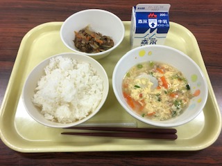 今日の給食は韓国風です。それぞれとても美味しくて体が温まります。