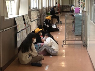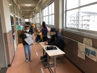 朝の4年生、登校してきた順にまず健康チェックリストの提出です。