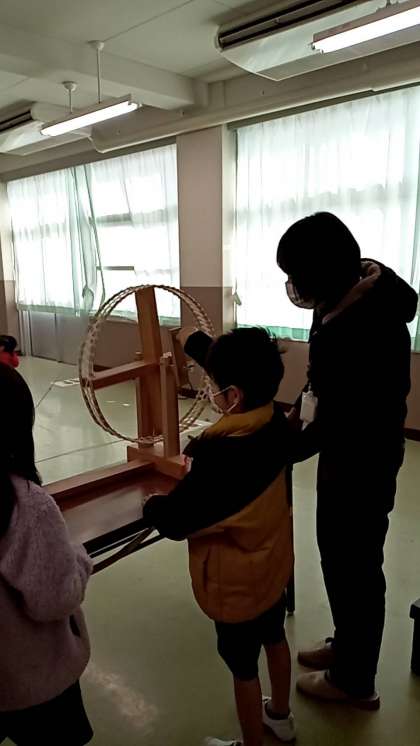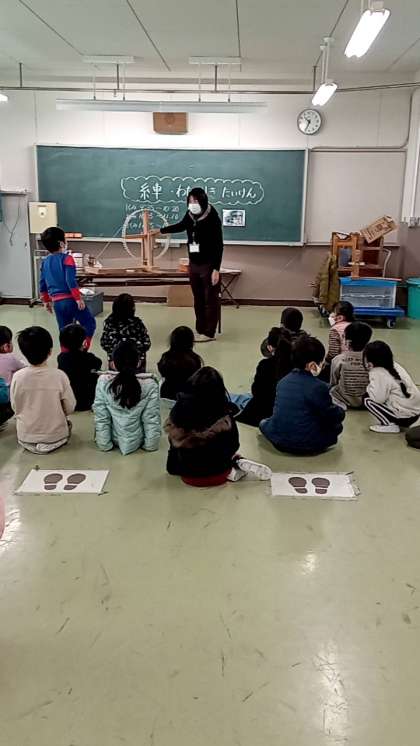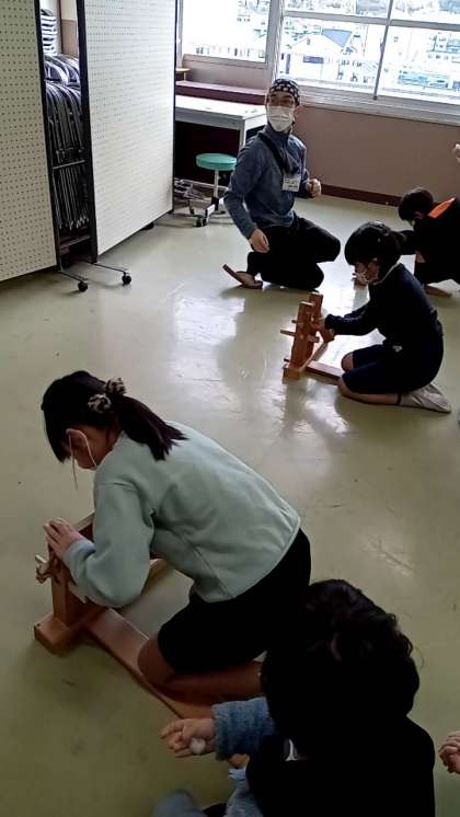 1年生の大東市歴史民俗資料館の出前授業、「綿繰り体験」と「糸車体験」、みんな「昔の人」になれたでしょうか♪