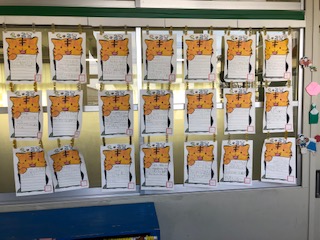 2年生の1クラスは道徳「ゆきひょうのライナ」で命の大切さとその命をいただいて生きることの意味を考えています。トラの新年の抱負掲示には生き生きと新年の意欲が書かれています♪