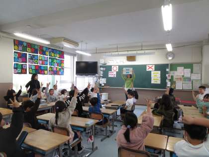 2年生で発育測定と保健指導がありました。保健指導では、「プライベートゾーン発展編」として、〇×クイズで今までの学んだことを振り返りながら、場面によってどうなのかを考えました。子どもたちから、「×が多いな。」という声が出たときに、「プライベートゾーンは大事なところだから、×が多いんだよ。自分だけの大事なところだよ。」と子どもたちに伝えていました。