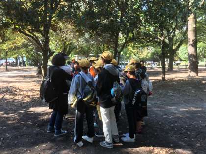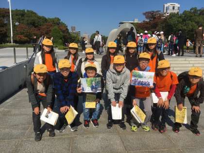 午後からは、平和公園内の碑巡りをしました。6グループに分かれて、ボランティアの方から説明をしていただきました。