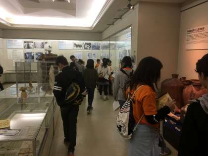 大久野島に着いた子どもたちは、毒ガス資料館を見学しました。この島で作られた毒ガスが戦争で使われました。また、作っていた人たちもその毒ガスを吸って亡くなるという悲惨なことがあり、戦争の惨たらしさを感じて、二度と過ちを繰り返してはいけないことを強く思いました。