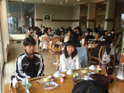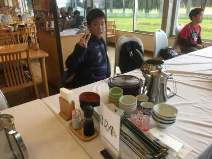 朝食の様子です。自分たちでご飯や味噌汁をよそいます。