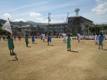 応援団との応援練習です。相手に応援をおくったり、自分のチームを応援したり、いくつかのバリエーションを練習してみました。