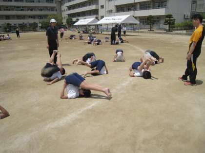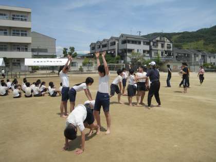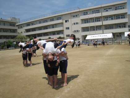 運動場での6年生、まさに「メイキング オブ ザ 組体操」。安全を守る注意を織り込みながら、1つ1つの動きを創っていきます。近づくと、6年生の子どもたちにとても強い「気」・・「自分たちで創り上げる!」を感じました。最高学年として、自分たちがしっかり完成させて、下の学年を引っ張る・・という気概が生まれているようです。頼もしく、成長していくのが楽しみです♪