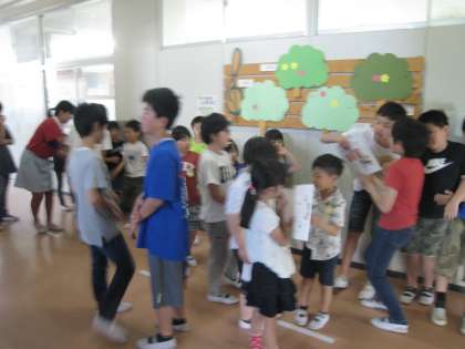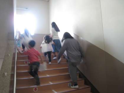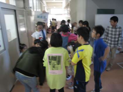 1年生の校内探検、6年生が班毎に分かれてガイド役です。職員室、校長室、保健室、そして2階へ移動します。