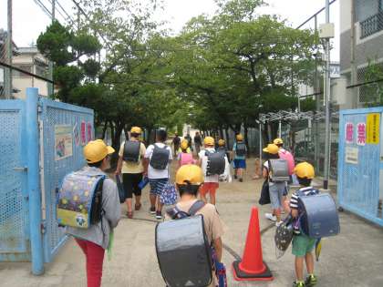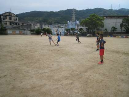 昨日の登校の様子です。やわらかい表情で登校してきています。意欲も感じます。早くから運動場で遊ぶ子たち、サッカーは4年と5年です。