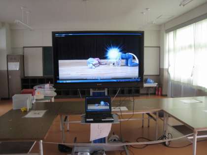 6年3組は、こんなの初めて!と思えるムービーでした。本編は暗くて撮れなかったのですが、待っている間の予告ムービーが完成度高く、CG効果を入れていて、最近の映画みたい・・スゴイです。「ワールド オブ ループ」という題名だったかな・・・