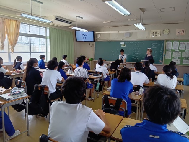 1組 英語 AETの先生と発音をチェックしていっています。「would like to」の読みでは、小学校で学んだ表現だったようですが、改めて文字で読み込むことで理解を進めていきます。