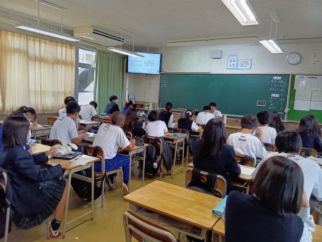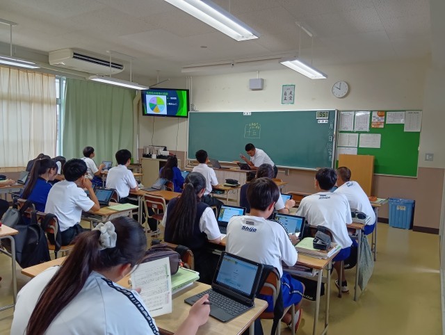 3組 社会 文化祭でデジタル展示されていた都道府県調べの発表でした。プレゼンテーションということですが、発表者から質問が出たり、呼びかけをしたり聞く側も楽しんでいました。