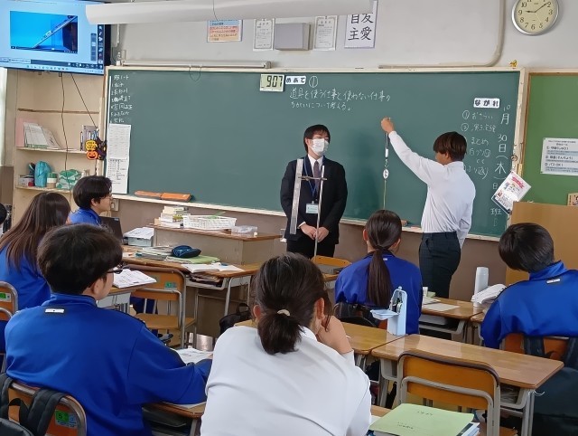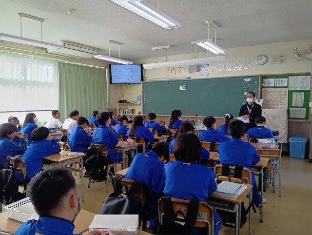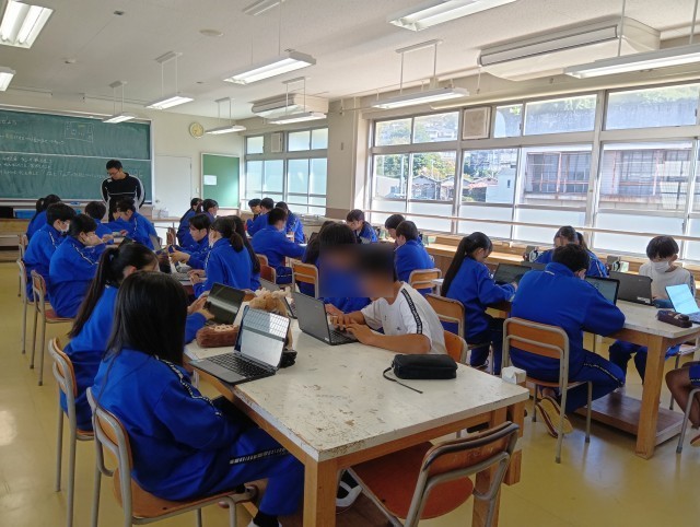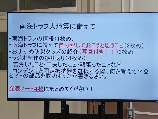 2年生 技術 これまでのラジオ製作を経て防災について考えていっています。タブレットを使って様々な情報を集めています。
