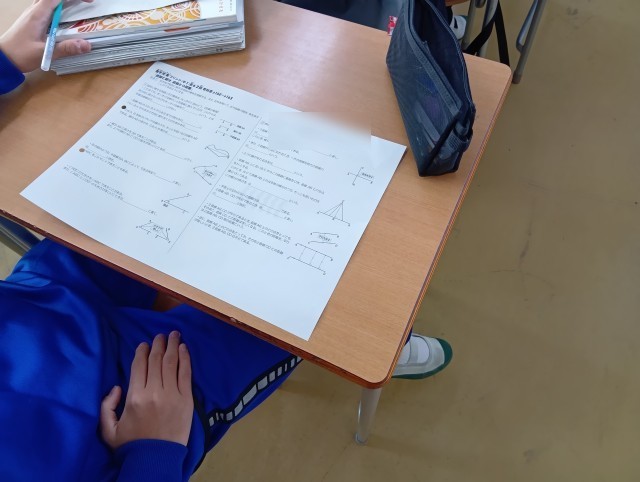 1年生 数学 平面図形の単元に入りました。基本の用語 直線ABなど基本的なことがらを理解するところから進められています。
