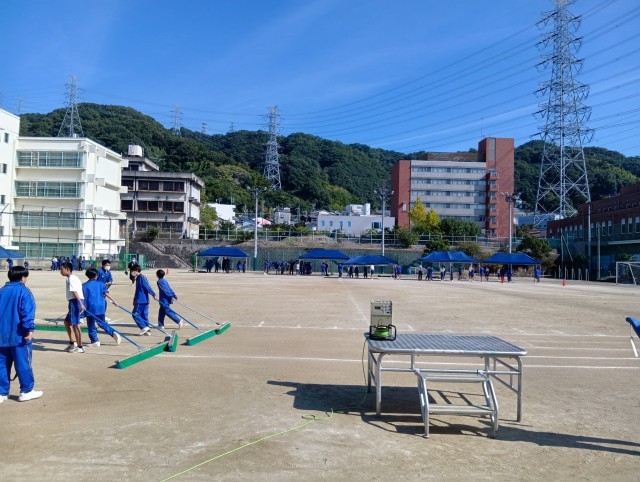 また、全体練習の終わりに各クラス座席の位置にテントを立てました。