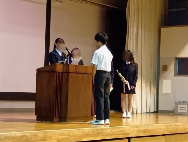 クラス大繩跳びの表彰がおこなわれ、賞状やトロフィーが前期菊葉会会長から授与されました。