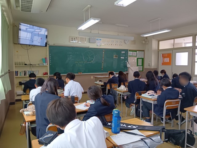 1組 数学 三本の直線に接する円の作図にチャレンジしていました。まずはどんな円なのか具体的にイメージし考えるところがスタートです。