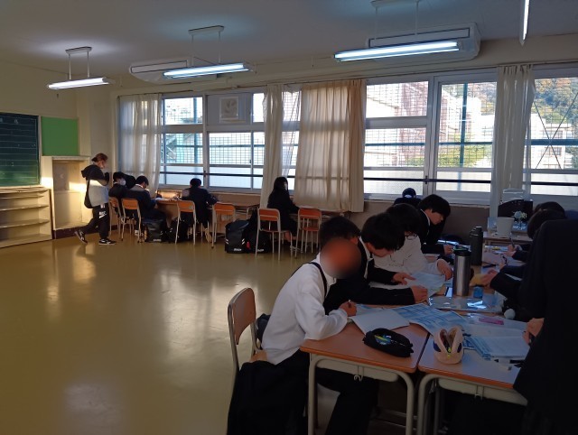 2年生の教室はとても静かに落ち着いたようすでそれぞれの課題に向かっていました。