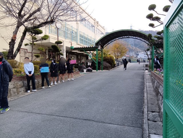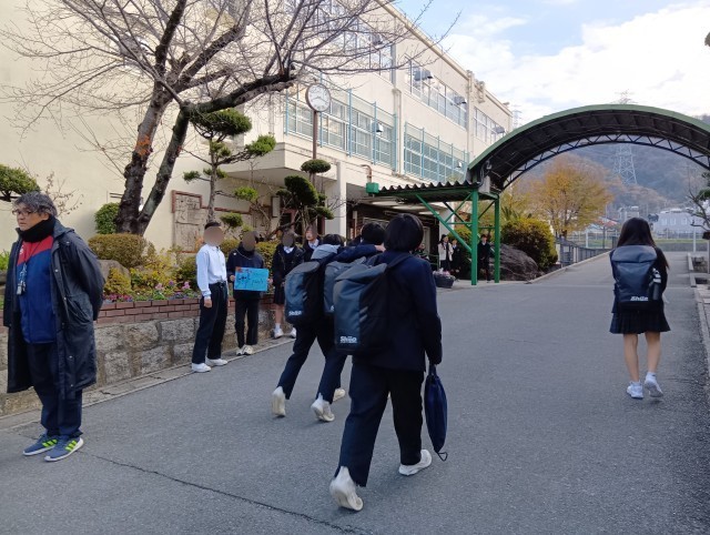 菊葉会役員と1年生体育委員会のメンバーがあいさつ運動をしています。