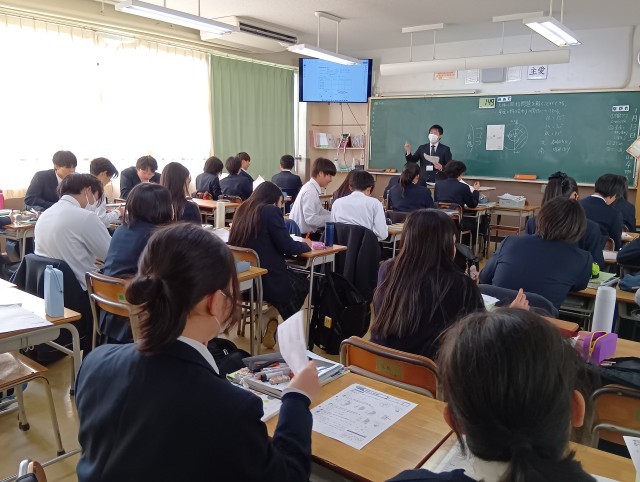 2組 理科 天体の動きについて学んでいました。観察地点による時刻・方位の問題などイメージを図にできると理解しやすいところです。集中して注意点を聞いていました。