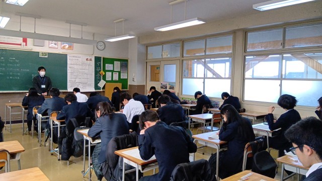 一時間めから空気が張り詰めています。中学校生活での最後の定期テストです。