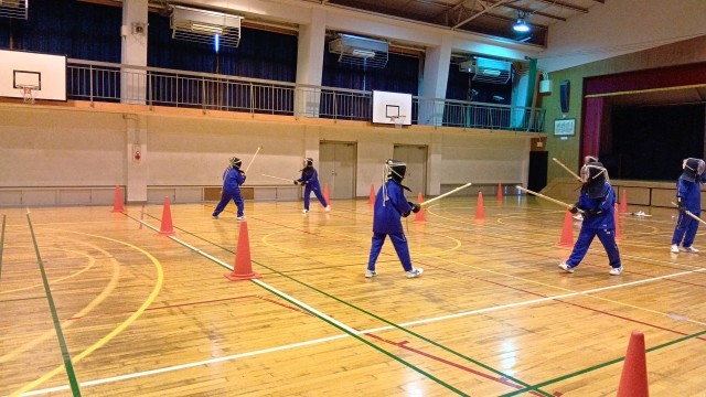また、体育の授業では剣道にとりくんでいます。面をつけるところから初めての生徒が多く、時間がかかっていました。