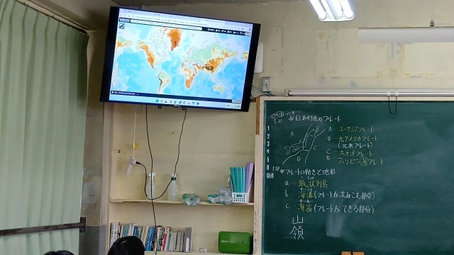 理科の授業では、大陸について社会科の地理的な知識にも触れながら、大陸移動説、大陸プレートの話へとつながっていきました。