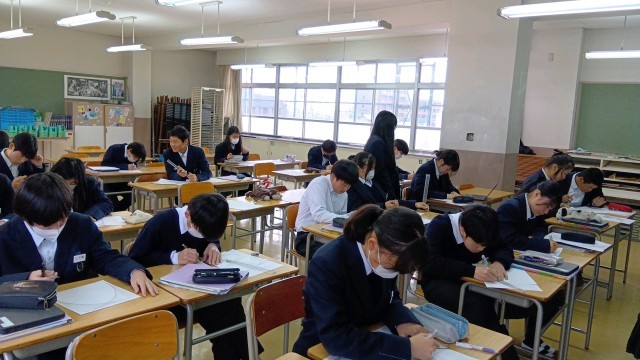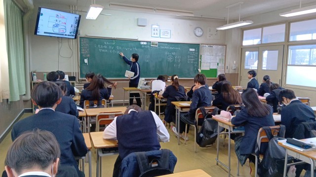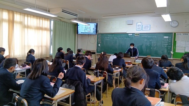 理科の授業では、直列回路と並列回路の抵抗について学んでいました。事前の授業で実際に回路を見ていたこともあり、納得しながら計算しているようすがありました。