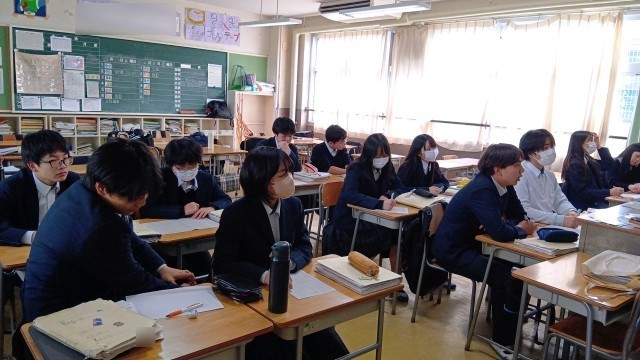 1組 社会 私立高校の過去の入試問題をピックアップして挑戦しています。教室にいつもと違った緊張感がありました。