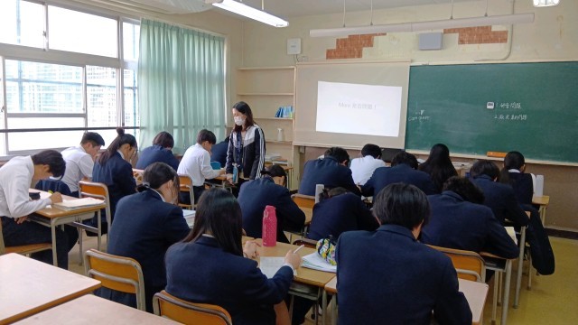2組 英語 少人数のクラスで、授業の初めにとりくむ発音チェックや単語チェックを行っていました。