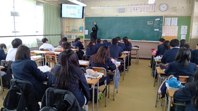 3組 理科 問題演習の時間でした。自分の担当する問題を責任を持って解答します。自然に質問し合う姿がありました。