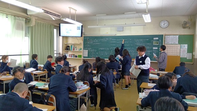 2組 数学 資料の整理の単元の学習をしていました。数値の意味が分かると相対度数を使用することの便利さがわかってきます。