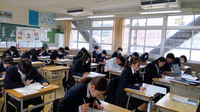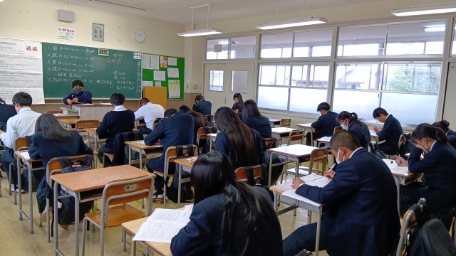 2年生も実力テスト、模擬受験の当日となりました。机上には受験票を置き、試験に臨みました。