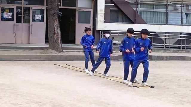 野球部はキャッチボールから、バドミントン部はフットワークからと基本練習から体をほぐしていました。
