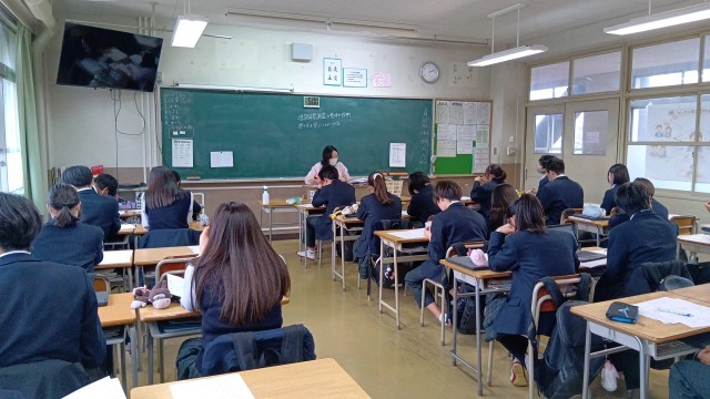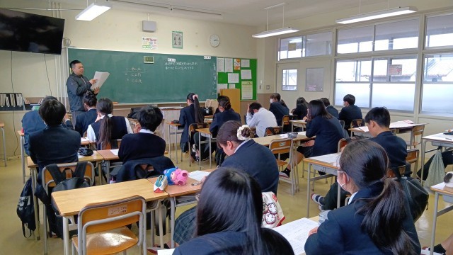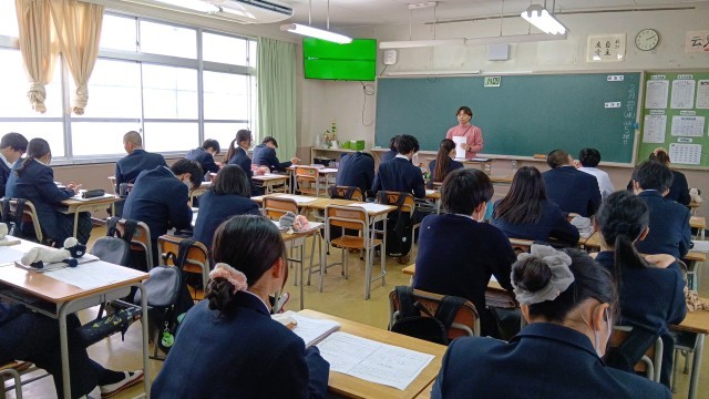 2年生は6限総合で、来年度を見据えた進路学習のとりくみとして、進路希望調査の説明と実際の提出に向けて学んでいます。
