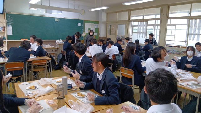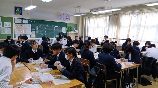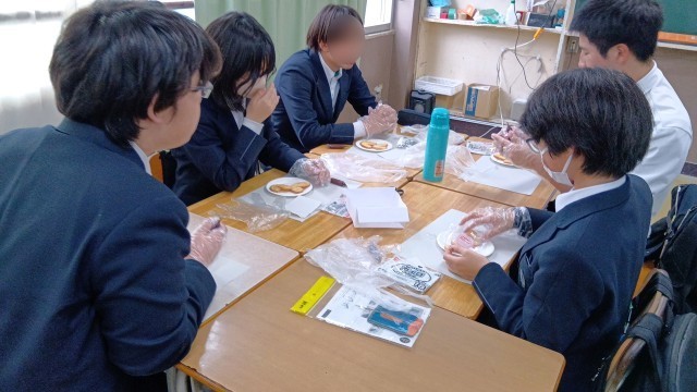 3年生の家庭科です。今日は、チョコペンアートの実習です。