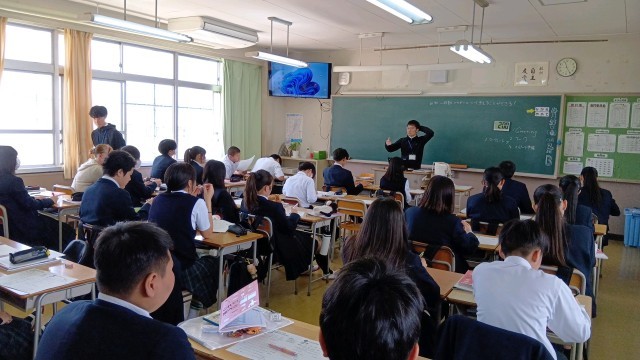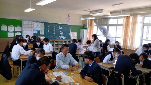 1組 英語 ちょうどペアでの活動が終わったところでした。活動のようすで、わからないところを積極的に聞いている人がいてとても素敵だったと担当の先生からほめてもらっていました。