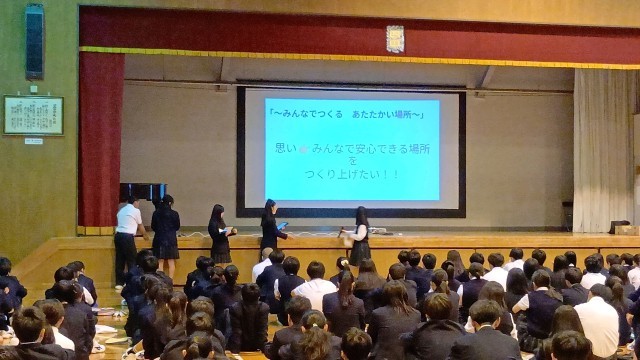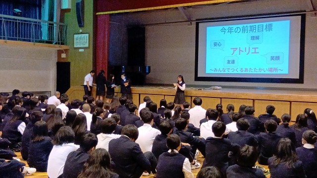 今日の内容は前期生徒会の活動目標の発表でした。