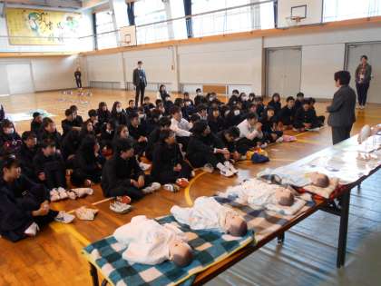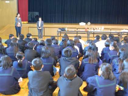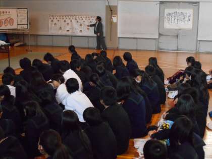 1月20日(月)午後、1年生。ゲストティーチャーを招いて「いのちの学習」を体育館で行いました。