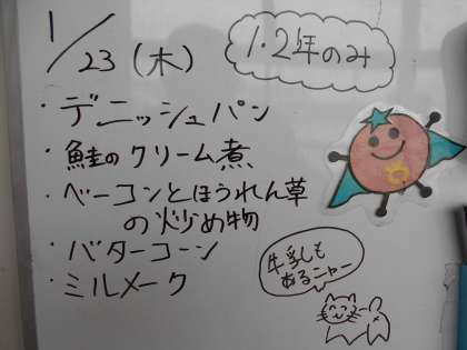 1月23日(木)の給食です。今日も、1・2年生だけの給食です。