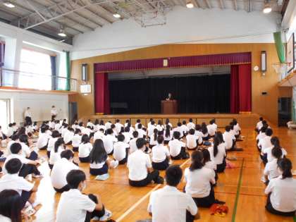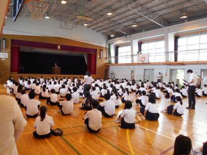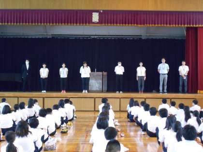 6月15日(月)午後1時45分から、体育館において、令和2年度1学期始業式を挙行しました。校長からの話や、先生方の紹介などを行いました。